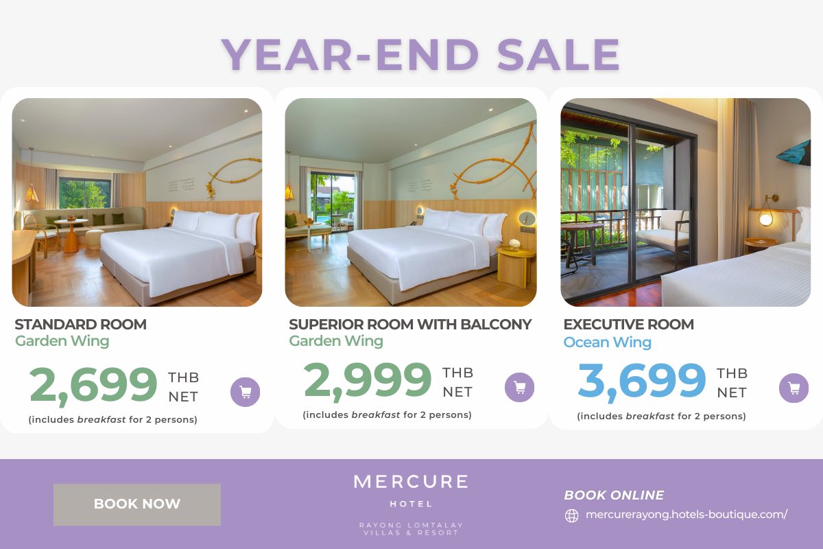 Be it a romantic honeymoon escape, a family reunion, or a wellness retreat. Mercure Rayong Lomtalay will enrich your experience and deliver true Thai service with style.