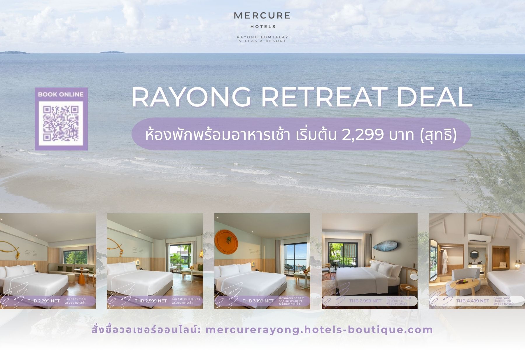 ไม่ว่าจะเป็นการมาพักผ่อนกับคู่รักฮันนีมูนอันแสนโรแมนติก การออกมาเที่ยวกับครอบครัว หรือการพักผ่อนเพื่อสุขภาพ ในวันสบายๆ เมอร์เคียว ระยอง ลมทะเล วิลล่า แอนด์ รีสอร์ท พร้อมเติมเต็มทุกช่วงเวลาและมอบประสบการณ์ บริการแบบไทยแท้อย่างมีสไตล์ให้กับคุณ